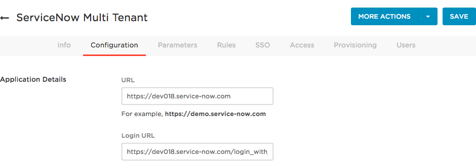 In the Login URL field, enter your ServiceNow login URL, including the sys_id string that you copied in ServiceNow.