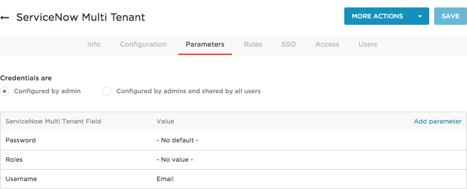 If you want to set up SSO for ServiceNow with form-based authentication, see Adding a Form-Based Application.
