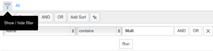 You can manually scroll through the list of plugins or use the Show/Hide Filter icon and search using a keyword, like Multi.