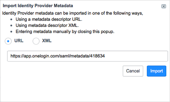 When prompted to Import Identity Provider Metadata, provide your Issuer URL.