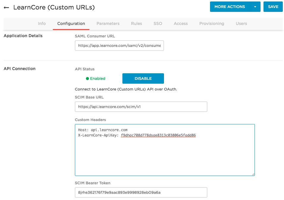 | SCIM Bearer Token | The SCIM bearer token that you requested from LearnCore support |