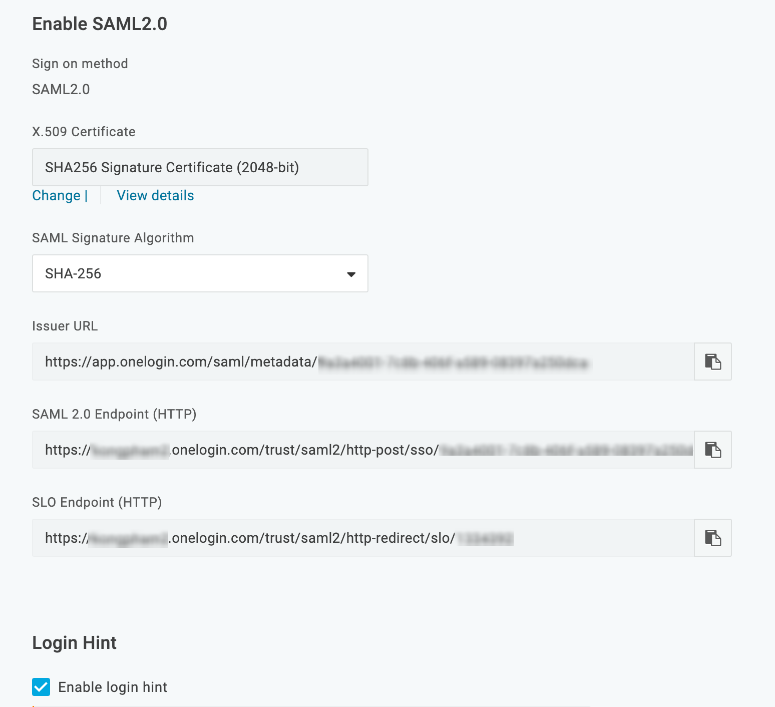 - Switch to the SSO tab and copy the SAML 2.0 Endpoint (HTTP) value, then paste it somewhere to be retrieved later.