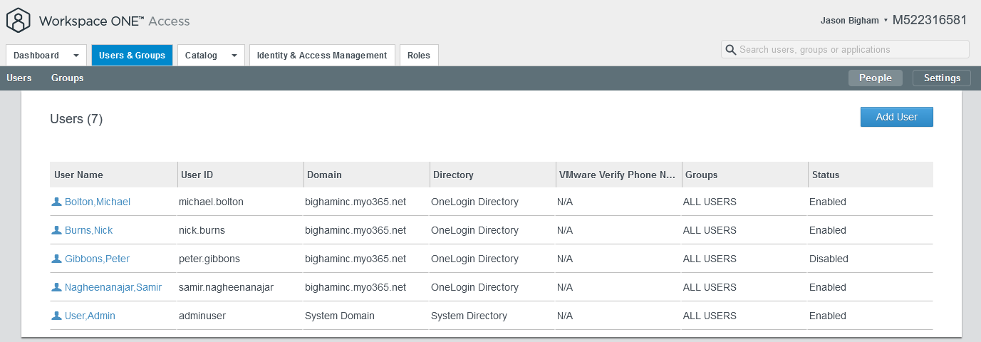 - To validate the same within VMWare Workspace ONE Access, navigate to Users & Groups for a summary view and select a SCIM provisioning user for a detailed view.