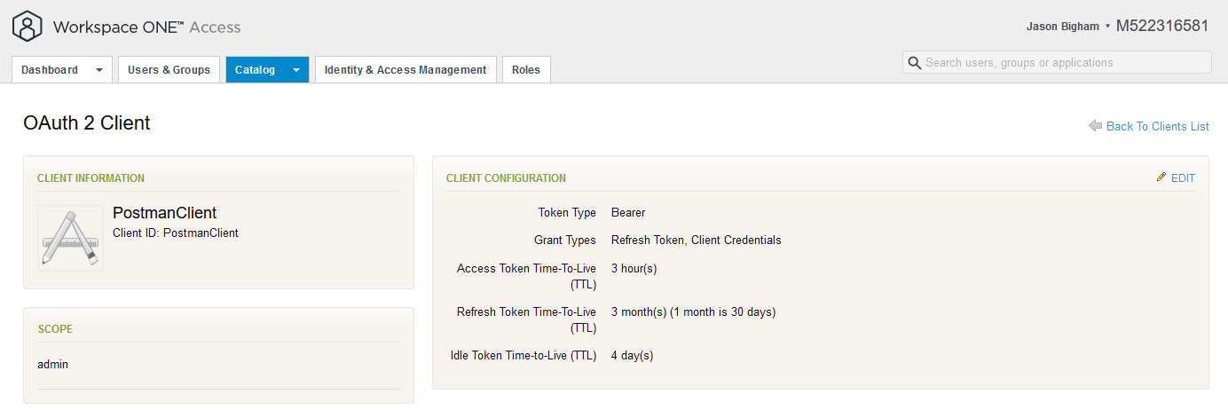 Client ID: e.g. PostmanClient