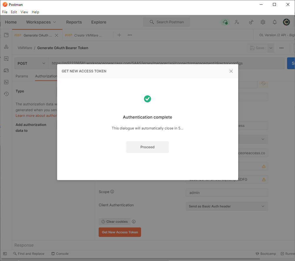 - Download, install, and launch Postman, then create a new tab to Generate an OAuth Bearer Token via the Get New Access Token button.
