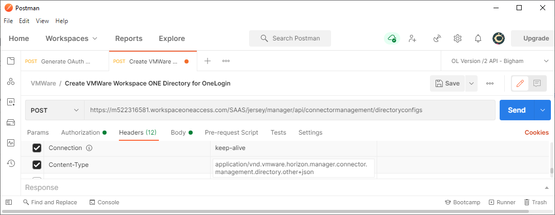 NOTE: At the time of this article, VMWare Workspace ONE Access only allowed creation of a non-LDAP based ‘OTHER’ directory via their API. The next several steps illustrate how to leverage Postman to create an OTHER directory as the repository of your SCIM synced/managed OneLogin users.