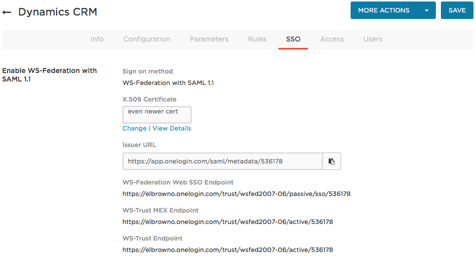 Configure your Dynamics CRM server with OneLogin's SAML metadata.